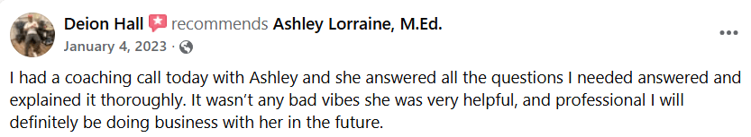 "I WAS HESTITANT TO TRY BECAUSE MY CREDIT WAS TERRIBLE AFTER MY DIVORCE. PROFESSOR ASHLEY HELPED ME TAKEOVER SOMEONE ELSE'S MORTAGE WHICH REQUIRED ZERO CREDIT CHECKS! I KEPT IT AS A RENTAL INVESTMENT PROPERTY."